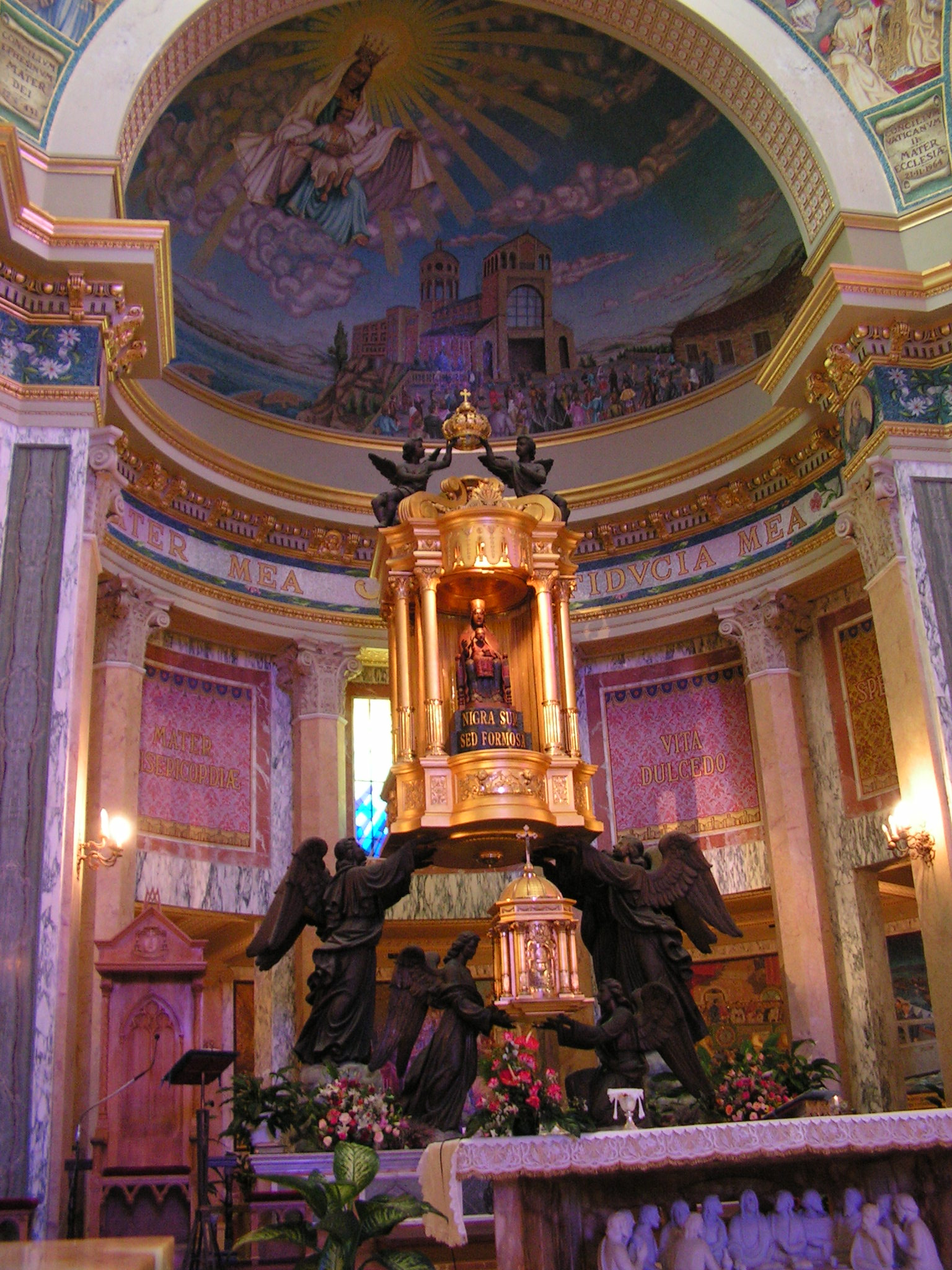 In Montserrat war er nicht mit und in Loreto gibt es nur noch 'ne Nachbildung der verbrannten ... ich glaube, der Bär hat noch nie eine schwarze Madonna gesehen.