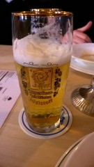 Nicht nur die Einrichtung im Restaurant ist bayerisch gehalten, nein auch das Bier vom Augustiner Bräu lässt eher Gedanken an die bayerische als an die bundesdeutsche Hauptstadt aufkommen.