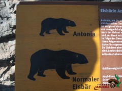 Antonia ist 1989 geboren und per Flasche aufgezogen worden. Sie ist zwergwüchsig und wird daher von ihren Artgenossen nicht akzeptiert, dies wiederum beeinrächtigt aber nicht Antonias Leben.