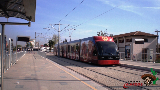 Tram beim "Neuen Bazar" Ticket zuvor beim Schalterhäuschen kaufen