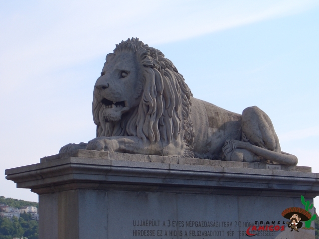 Löwenstatue am Brückenkopf der Kettenbrücke