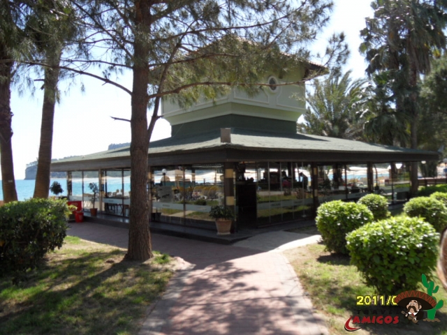 Der Moonlight Park in der Nähe der Marina von Kemer. Hier gibt es nette Strandrestaurants, Sandstrand, einen Pool mit Rutschen und eine Disco.