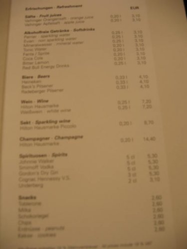 Minibarpreisliste