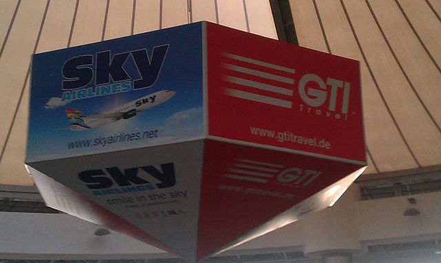 Werbung machen sie noch ordentlich. Zumindest noch am vergangenen Sonntag. Hängt an der Decke im Bereich der Abfluggates.